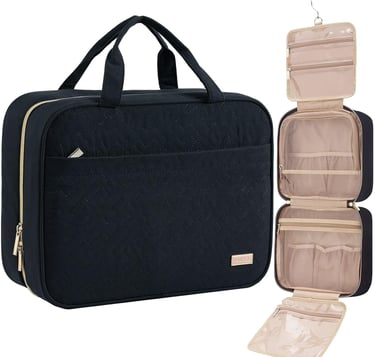 NISHEL Travel Toiletry Bag for women, Portable Hanging Organizer for Full-Sized Shampoo, Conditioner, Brushes Set, Makeup Accessories, Large Size, Black | Hanging, Portable, for Full-Sized Shampoo, Makeup Accessories, Brushes Set, Conditioner, Black