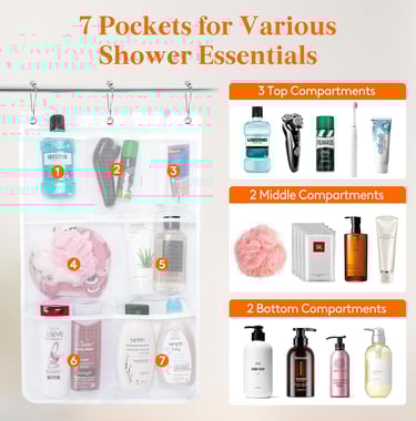 Lifewit Mesh Shower Caddy, 7 Pockets Hanging Shower Organizer with Quick Drying Mesh, Portable Space Saving Bathroom Organizer to Hold Soap, Shampoo and Conditioner